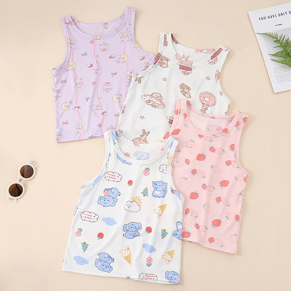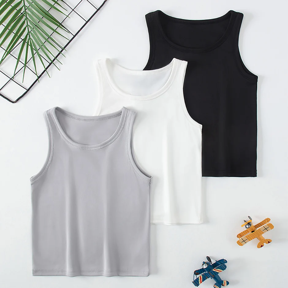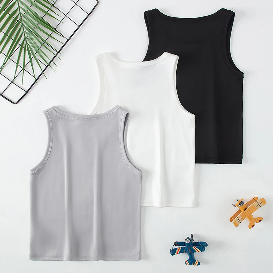 1/3/4 Pcs Children's Four Seasons Thin Solid Color Joker Vest Boy Loose And Comfortable Bottoming Shirt girl Sweet And Lovely T