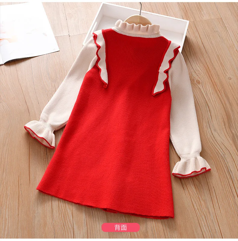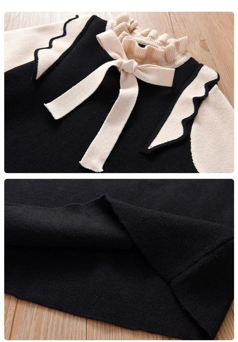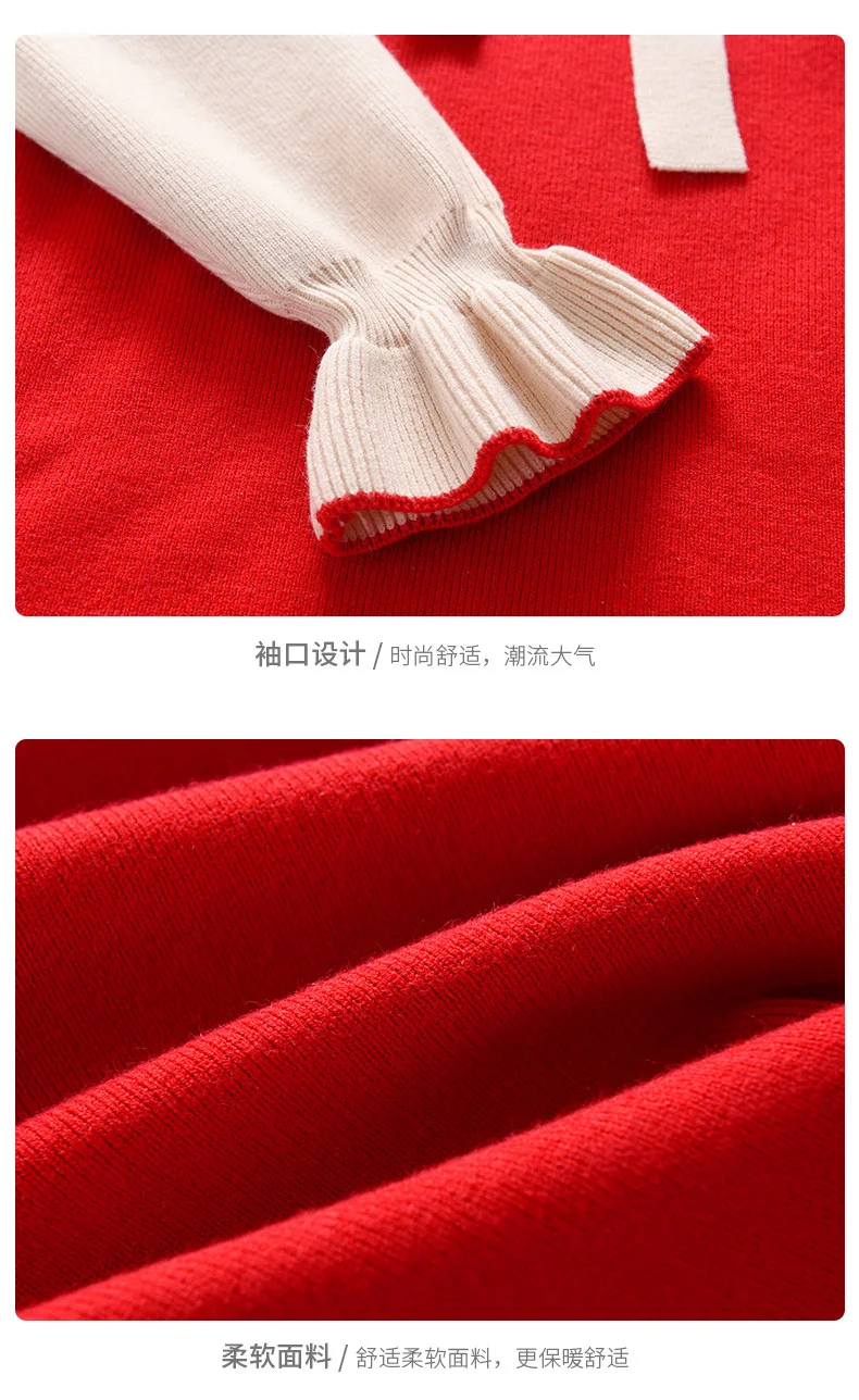 2026 Autumn winter Teenagers Girls Kids bowtie Knit Sweater Dresses Princess clothes new year christmas 4 5 6 7 8 9 10 11 year
