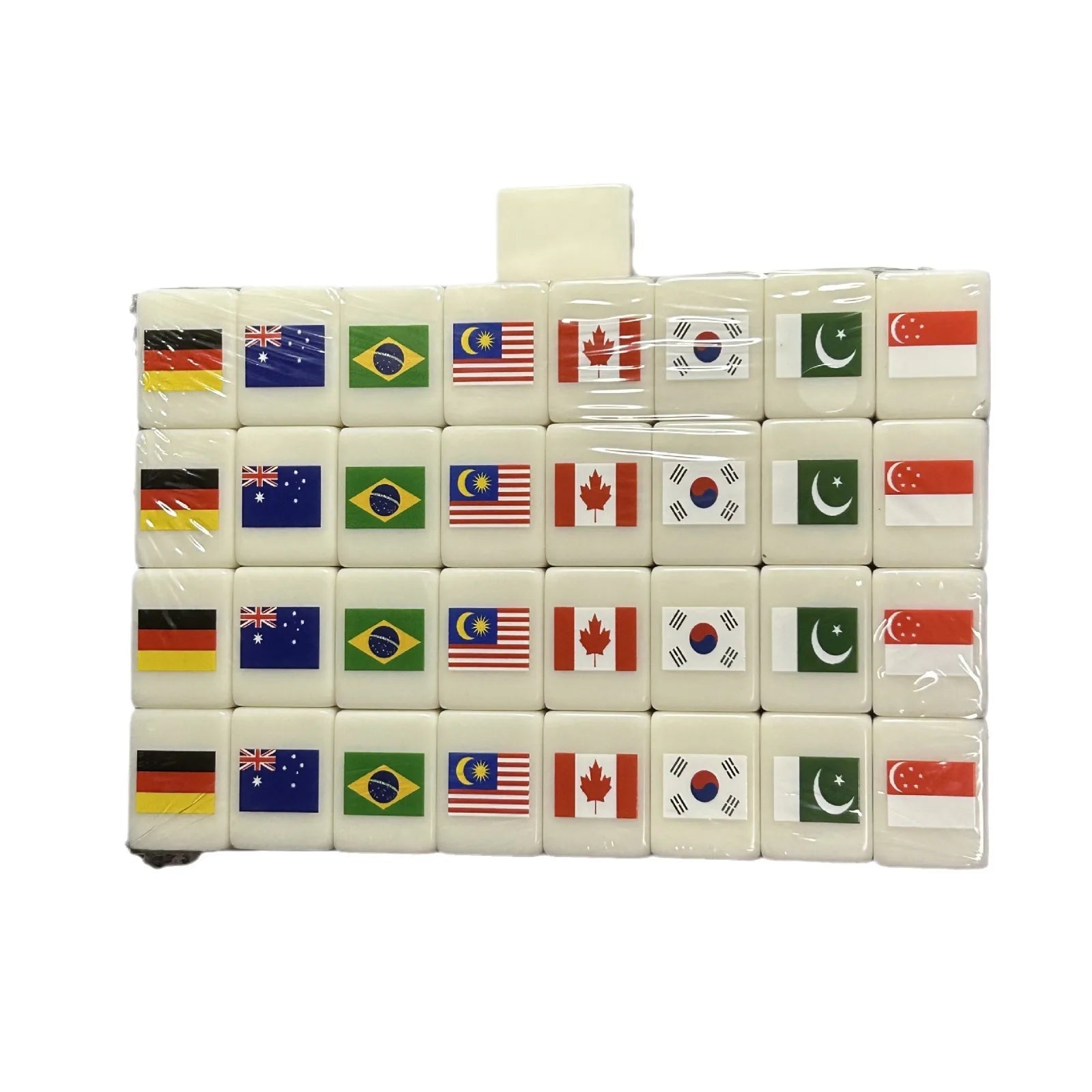 64Pcs Seaside Escape Mahjong Tile Game with Pattern of Flag Ball Funny Parent Child Party Game Children Toy Gift