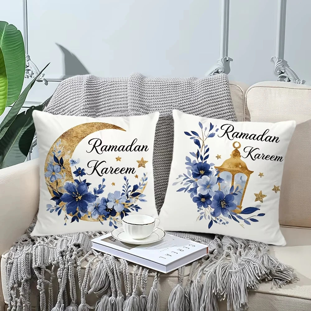 2026 Ramadan Golden Moon Pillow Cover – Islamic Home Decor (Polyester)