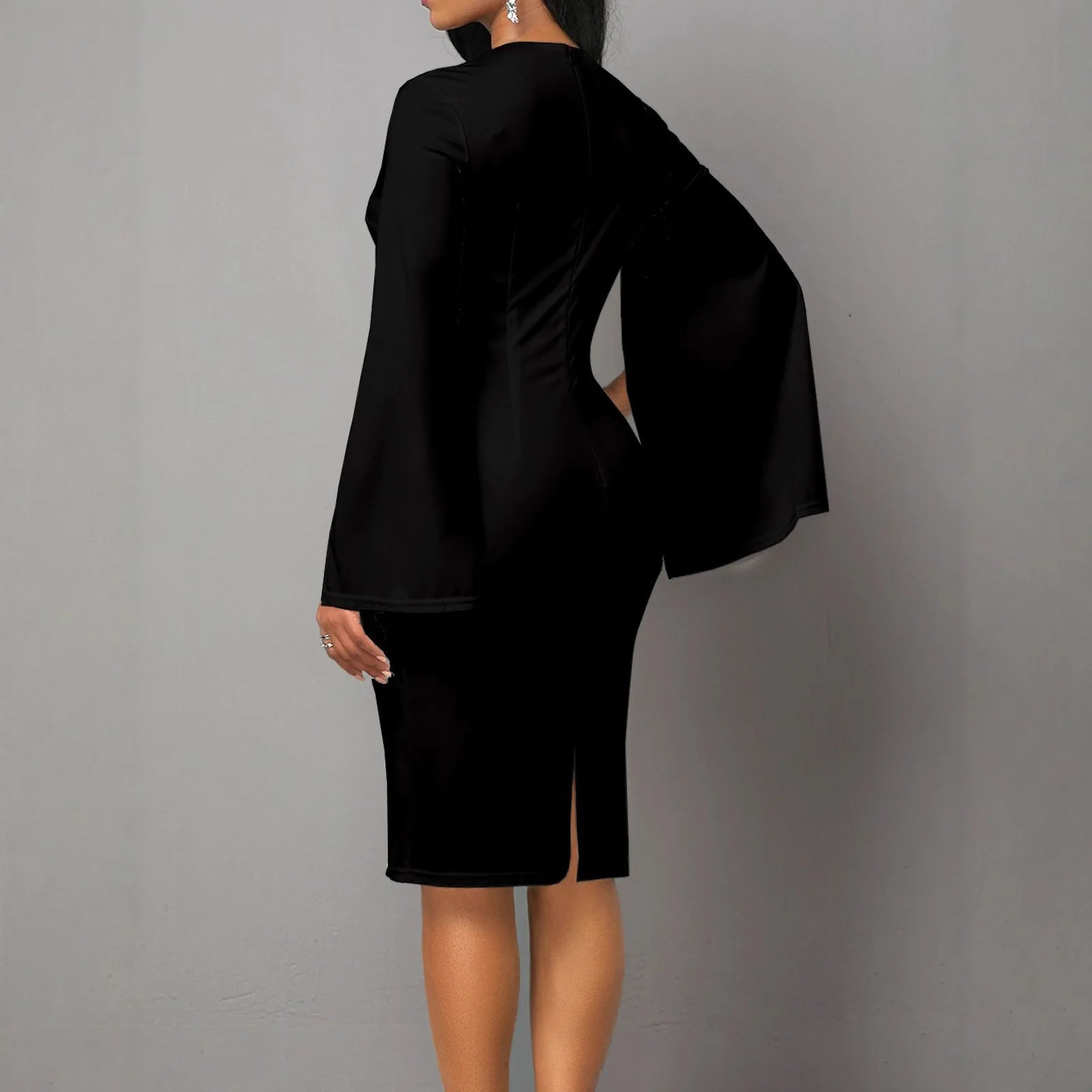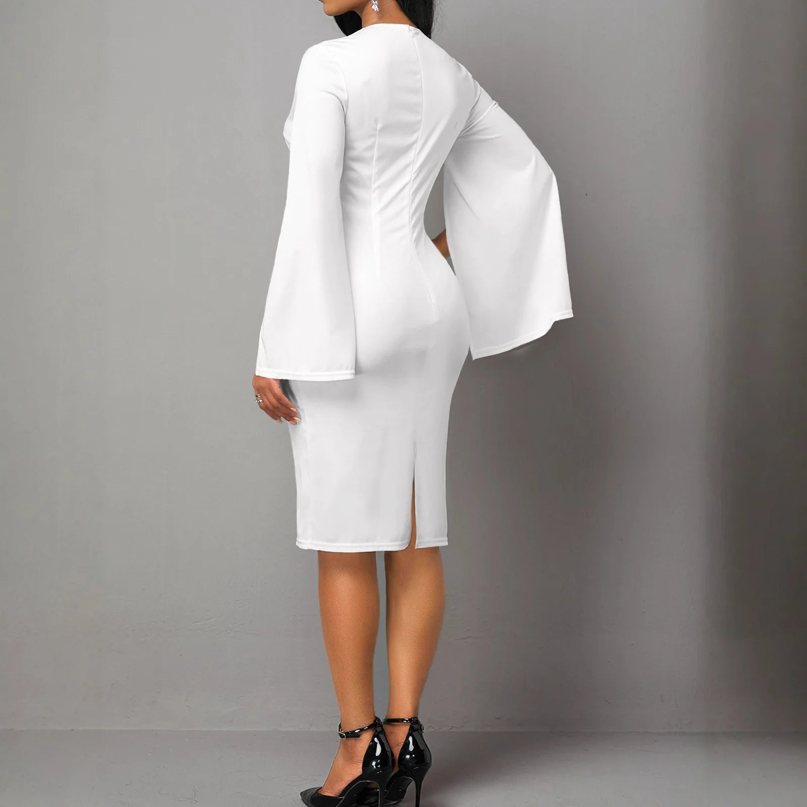 New Arrival Floral Print Office Midi Dress – Long Sleeve Pencil Style