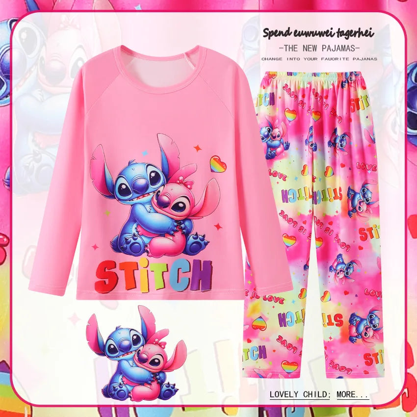 New Pajama Boys Girls Pajamas Set Stitch Clothing Sets Kids Long Sleeve +Pant 2Piece Children Home Clothing Girl Nightgown