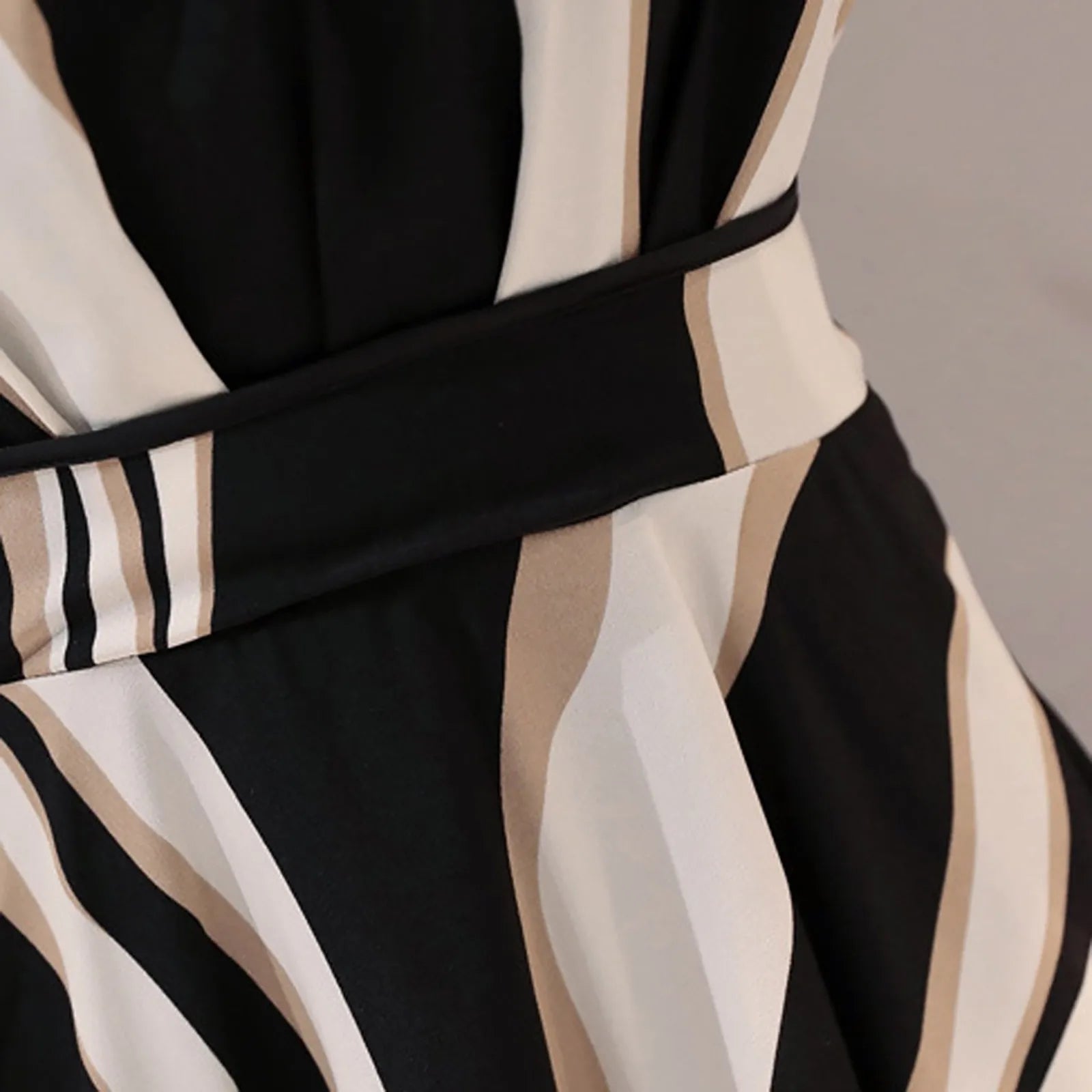 New Arrival Vintage Printed Business Dress – Belted O-Neck Short Sleeve