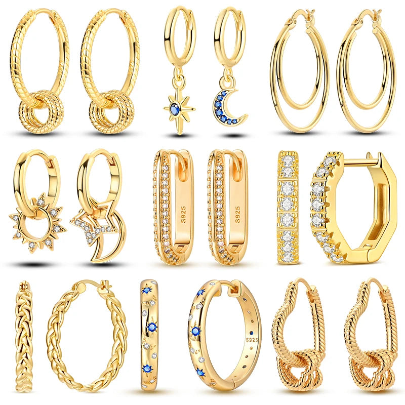 925 Silver Hoop Earring For Woman Rose Gold Yellow Pendientes Original Minimalist Earring Jewelry