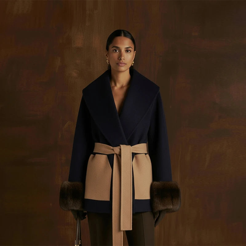 Add a cozy yet stylish layer to your cold-season wardrobe with this faux fur cuff patchwork jacket. Designed with a modern slim-fit silhouette and elegant details, it blends warmth, comfort, and everyday sophistication.